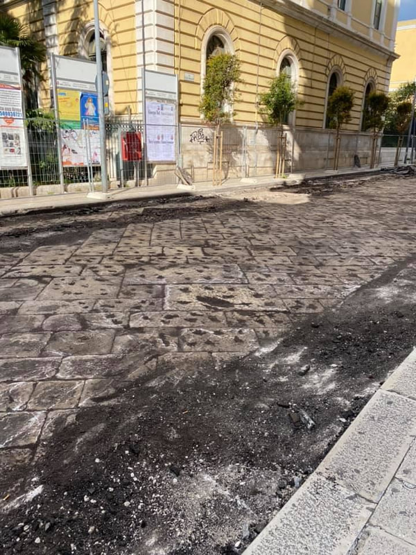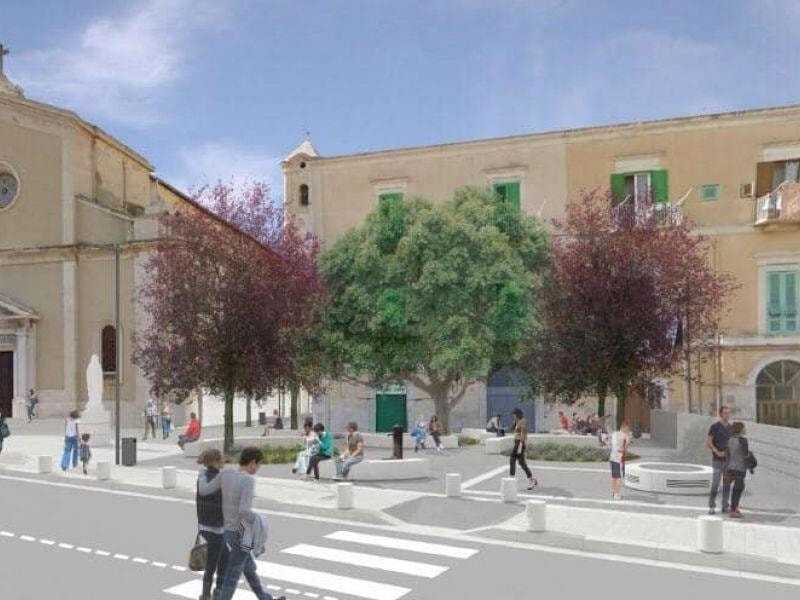 Proseguono i lavori di riqualificazione di piazza Immacolata. Collocata in chiesa la statua della Madonna di Lourdes