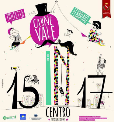 Sarà un Carnevale per i bambini e in centro a Molfetta per promuovere e incentivare il commercio di prossimità. Domenica 15 e martedì 17 gli eventi si concentreranno lungo Corso Umberto con un parco gonfiabili e parate di mascotte a cura di Frog, laboratori di maschere con materiale di riciclo grazie a La Voce di Sant'Andrea, le associazioni Terrae e Naturalia aiuteranno i bambini a diventare cavalieri e dame medioevali e ci sarà la musica di RadioIdea e lo spettacolo di Pulcinella del Carro dei Comici.