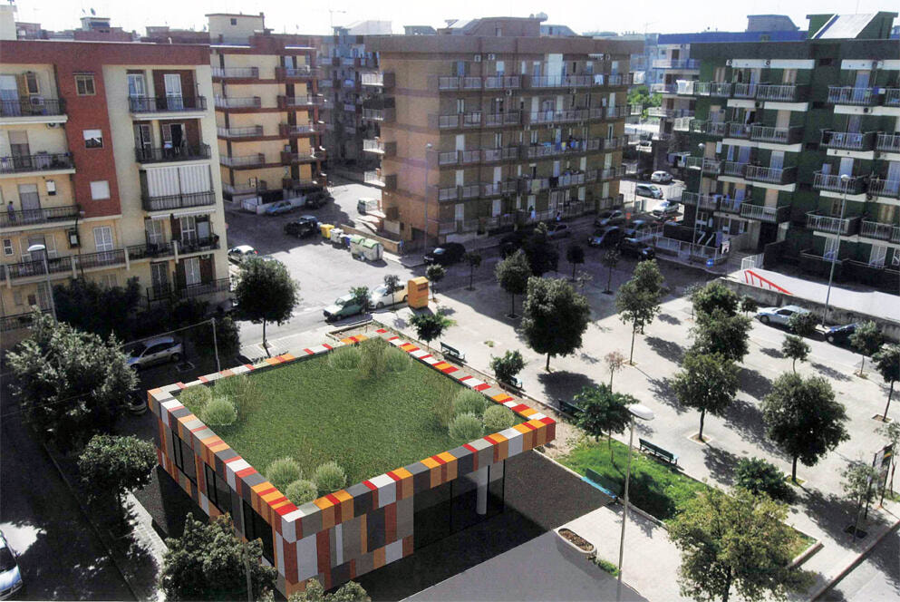 Il progetto prevede la costruzione di un nuovo manufatto della stessa volumetria dello stabile delle ex Poste presente attualmente in piazza Luxemburg. L'ingresso alla struttura sarà collocato lungo il portico sul lato sud ed prevista la presenza di una sala polifunzionale con il ruolo di luogo di incontro e di manifestazioni di vario genere, mentre l'ambito di supporto per i fruitori della struttura è individuato da tre ambienti spazialmente distinti collocati sul lato nord del manufatto con una connotazione di maggior chiusura e protezione.