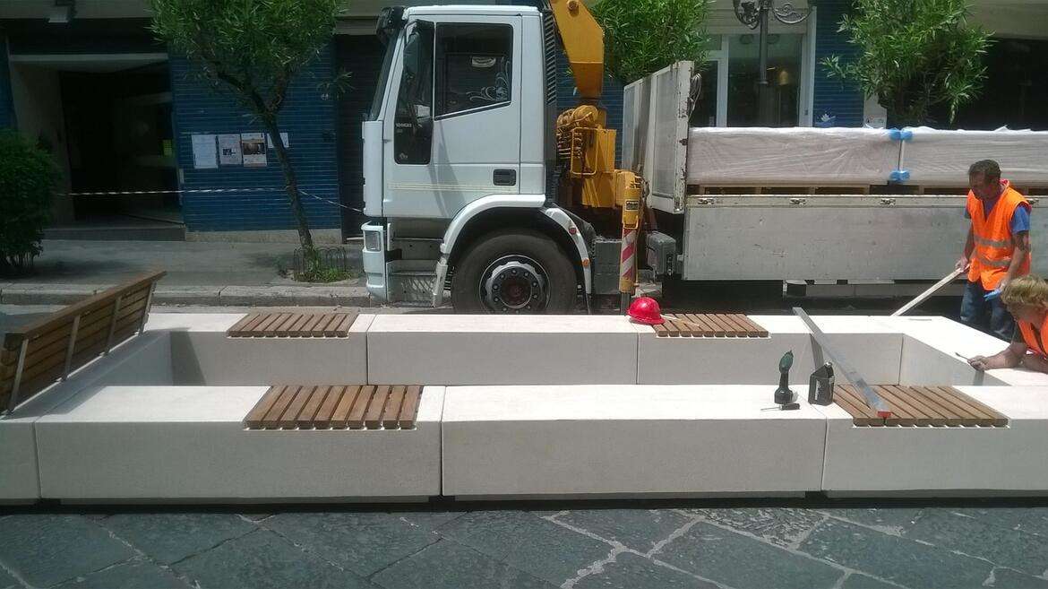 Sarà completato oggi il primo isolato di Corso Umberto con il nuovo arredo urbano costituito da panchine e fioriere assemblate in isole verdi che segnano l'avvio della riqualificazione del centro città.
