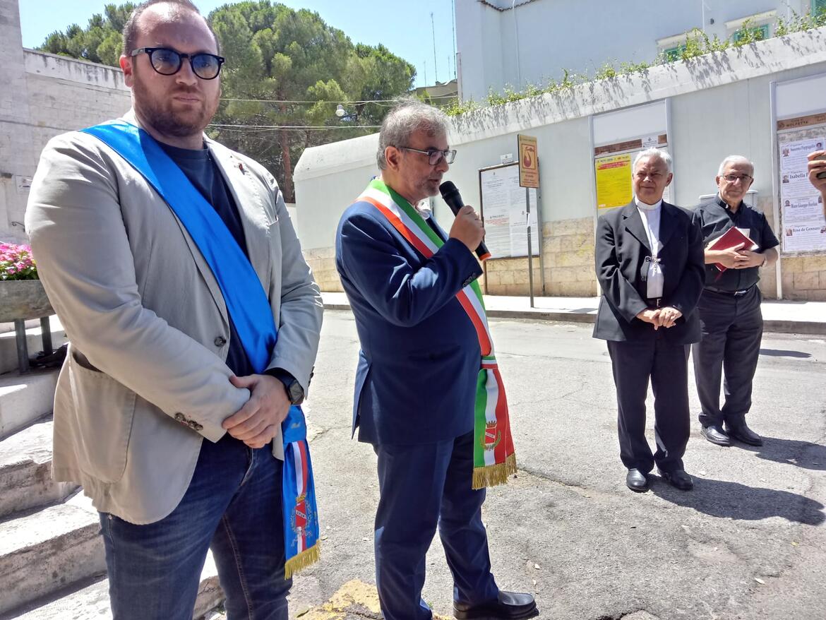 Il Vescovo, monsignor Domenico Cornacchia, per un momento di preghiera, il Sindaco, Tommaso Minervini per ricordare l'uomo delle Istituzioni ucciso 31 anni fa. Accanto a lui il presidente del Consiglio comunale, Robert Amato. Tutto intorno i conoscenti del Sindaco ucciso, i familiari, consiglieri comunali, assessori, amici.