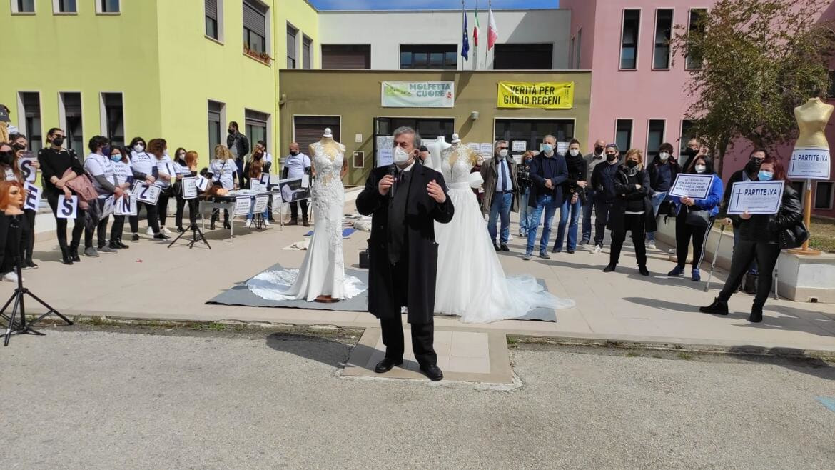 “In occasione come queste si ha la sensazione di farti prendere e di lasciarti andare alla condivisione emozionale delle cose. Vi capisco e abbiamo fatto ciò che ci è stato possibile, voucher, esenzioni. Ci siamo trovati anche noi a gestire condizioni psicologiche, disperazioni, di una grande comunità”. È quanto ha affermato il sindaco Tommaso Minervini durante la manifestazione “Basta proclami” organizzata da commercianti, ristoratori e artigiani davanti alla sede comunale di Lama Scotella.