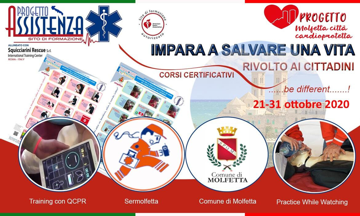 Con il Progetto Molfetta Cardioprotetta, è stata creata una rete di protezione diffusa nella città per intervenire e soccorrere in maniera tempestiva e adeguata le vittime di arresti cardiaci. La formazione sarà a cura del Sermolfetta Progetto Assistenza.