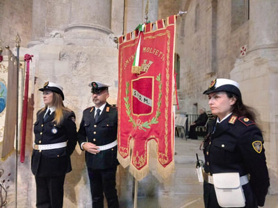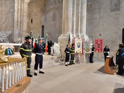 Ai lati dell’altare, nel Duomo, gremito, i militari della Capitaneria di porto e i vigili del fuoco, un po’ più in là le rappresentanze dei Marinai d’Italia, dell’associazione nazionale dei carabinieri, delle associazioni combattentistiche e d’armi, e poi i gonfolani del Comune di Molfetta, della scuola “Amerigo Vespucci”.