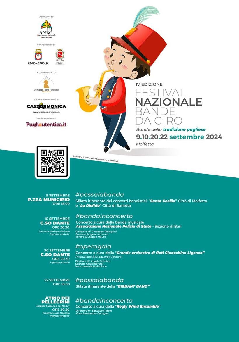 Un viaggio nella storia attraverso spartiti antichi composti dai padri della musica scritta per le bande. È quanto si propone di regalare la quarta edizione del Festival Nazionale delle Bande da Giro che si terrà a Molfetta, in provincia di Bari, il 9 e 10 e il 20 e 22 settembre prossimi.
