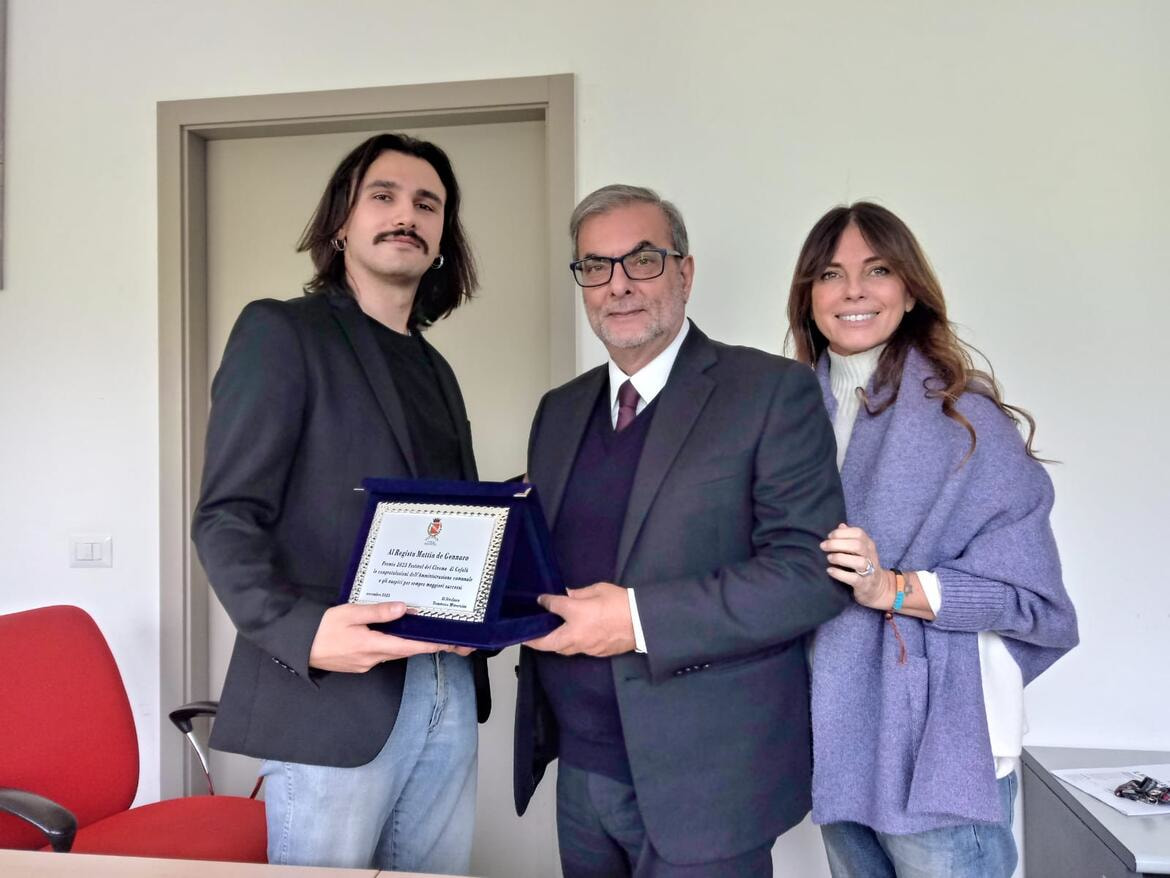 «Mi auguro che questo sia solo l’inizio di una lunga e appagante carriera. Molfetta può contare su un vivaio di registi che si sta facendo notare e apprezzare nel mondo. Complimenti al giovane Mattia che, a poco più di vent’anni, con il suo lavoro sta conquistando uno spazio nel mondo del cinema. I giovani talenti vanno incentivati». Così il Sindaco, Tommaso Minervini, che alla presenza dell’assessore Carmela Minuto, ha consegnato nelle mani di Mattia de Gennaro, giovane regista molfettese una targa quale riconoscimento dell’Ammnistrazione.