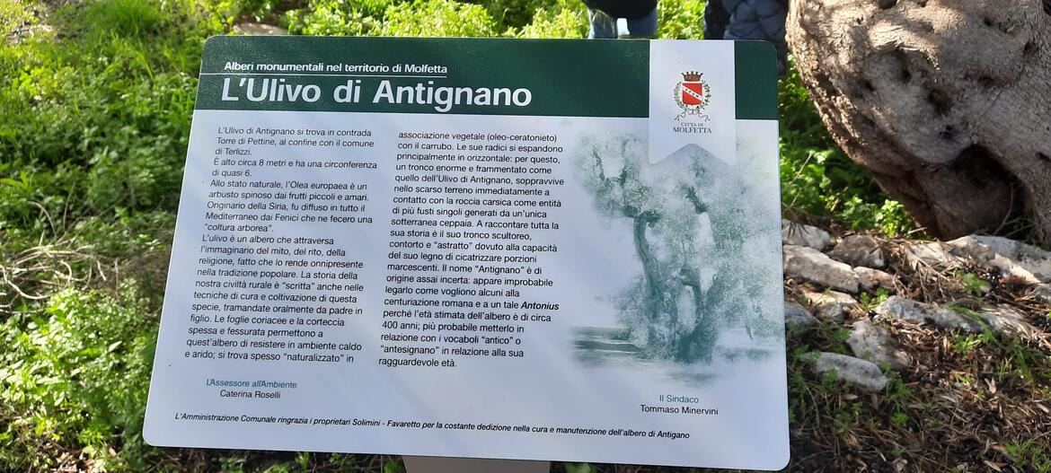D’ora in avanti, in prossimità dell’albero di Antignano, un monumentale ulivo presente nell’agro di Molfetta, dal 1600, ci sarà una targa a raccontare la sua secolare storia. Così l’assessore all’ambiente Caterina Roselli ha voluto concludere il ciclo di iniziative che hanno contraddistinto la Festa nazionale degli Alberi.