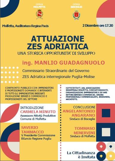 Zes Adriatica. Venerdì 2 dicembre, a Molfetta, il Commissario straordinario del Governo Manlio Guadagnuolo
