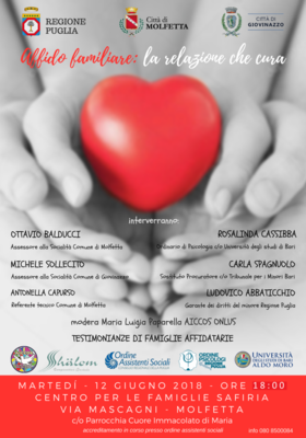 L'iniziativa è stata promossa dall' Ambito territoriale dei Comuni di Molfetta/Giovinazzo che hanno sottoscritto un accordo di partenariato con l'Associazione AICCOS e la Cooperativa sociale Shalom, nell'ambito del progetto di ambito territoriale denominato "Casa dell'affido" il cui fine è la promozione e il potenziamento dei percorsi di affido familiare.