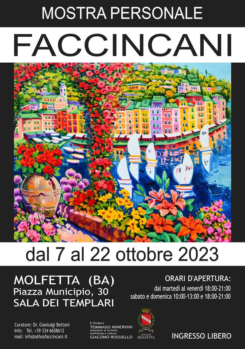 La vivacità cromatica delle opere di Faccincani è fortemente legata al Sud della nostra Italia e la mostra costituisce un appuntamento importantissimo per apprezzare, attraverso i paesaggi, la cifra espressiva e pittorica che ne fa un tutt’uno con il territorio, con i suoi colori e il profumo del nostro Mediterraneo.