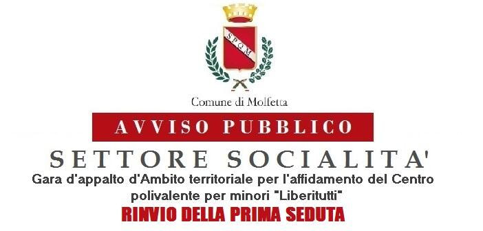 Avviso - Rinvio della prima seduta di gara per la verifica amministrativa