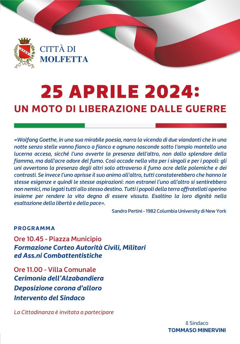 Programma delle celebrazioni di Giovedì 25 aprile 2024