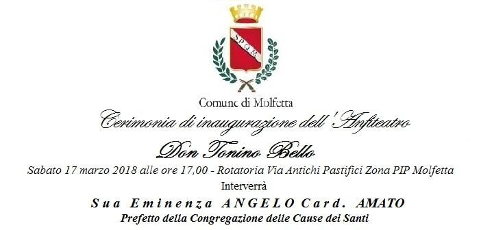 Descrizione Sabato 17 marzo alle ore 17,00 - Rotatoria Via Antichi Pastifici Zona PIP Molfetta.Interverrà Sua Eminenza Angelo Cardinale AMATO Prefetto della Congregazione delle Cause dei Santi