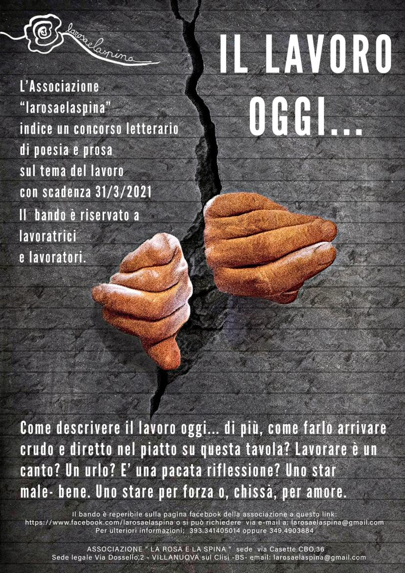 Descrizione L'associazione culturale La Rosa e la spina di Villanova Clisi (BS) comunica l'indizione di un concorso letterario sul tema del lavoro come da locandina e da Bando allegato.per eventuali chiarimenti tel.are a 3341405014