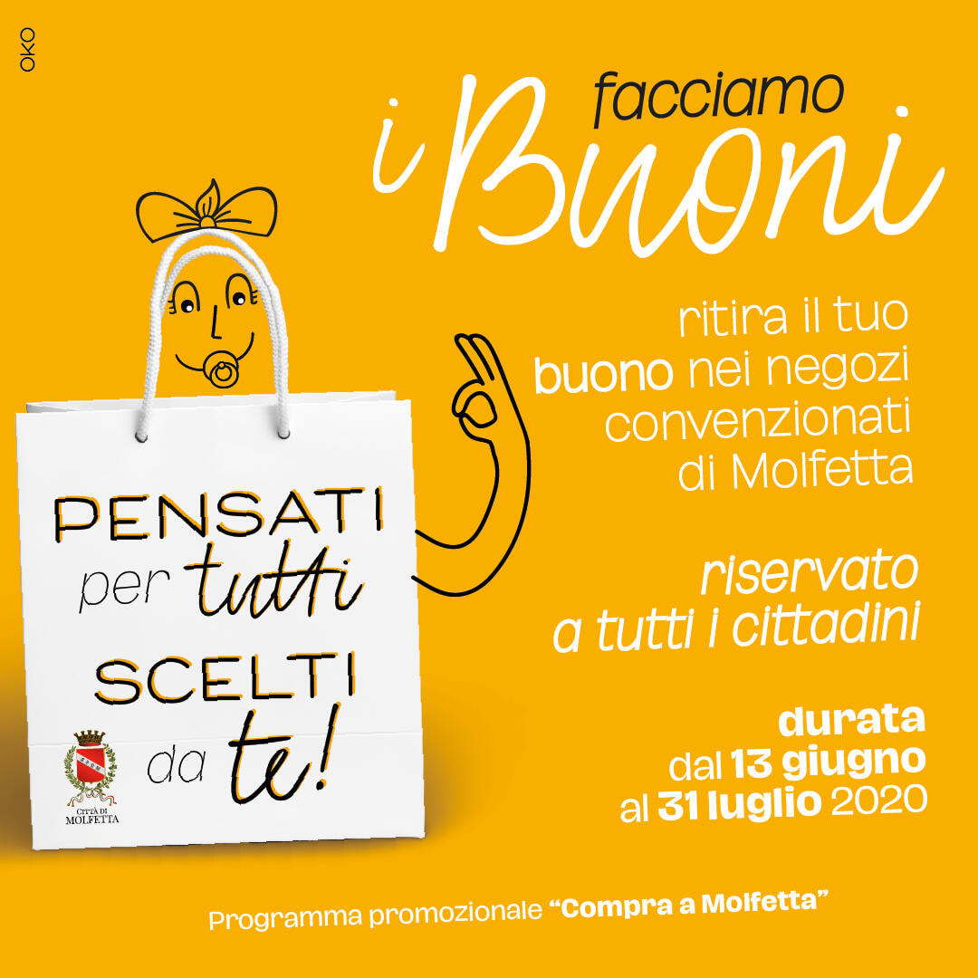 I voucher sono incentivi a beneficio del settore commercio, a cura dell’Amministrazione Comunale di Molfetta.