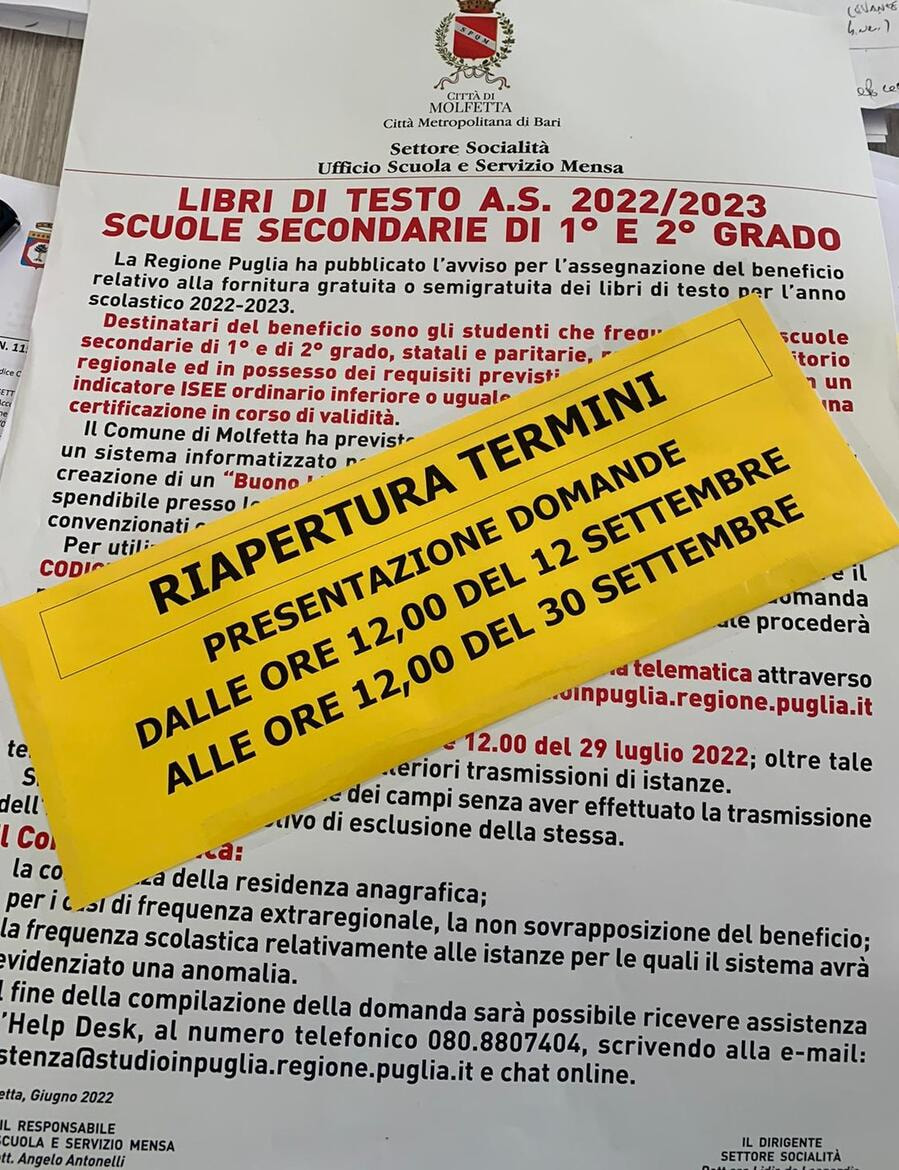 Ancora due settimane per aderire al bando regionale finalizzato ad ottenere la fornitura, gratuita o semigratuita, dei libri di testo e dei sussidi didattici.