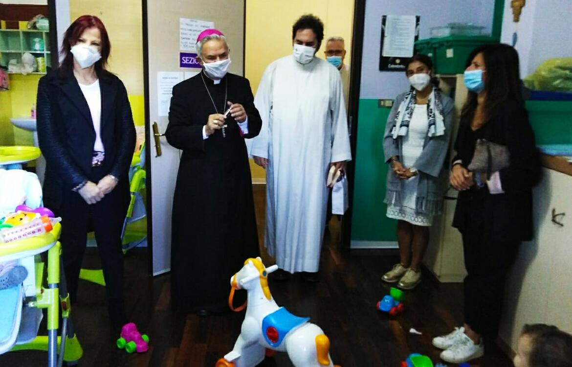Nel corso della sua visita, al termine di un momento di preghiera, monsignor Cornacchia ha benedetto gli ambienti, i bambini, gli insegnanti e il personale con cui si è trattenuto qualche minuto.