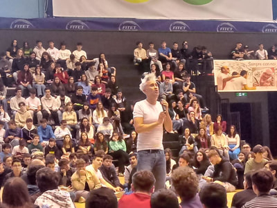 T-shirt bianca, capelli strutturati, jeans, scarpe sportive e aria giovanile. Il professor Schettini irrompe nel PalaPoli e l’entusiamo, degli oltre mille studenti presenti in rappresentanza delle scuole superiori di Molfetta, esplode. Lui parla di fisica, con esempi pratici e semplici, risponde alle domande dei ragazzi, e lancia messaggi sulla promozione della personalità dei giovani e delle selezioni.