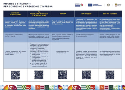 • Mini PIA: Pacchetti integrati di Agevolazione rivolti a micro e piccole imprese e a liberi professionisti;