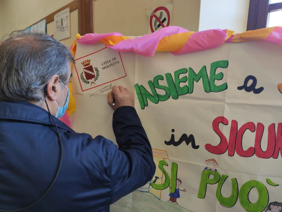 Per l’occasione il sindaco Tommaso Minervini ha fatto visita all’istituto, ricevuto dalla dirigente Tiziana Santomauro e dai bambini. “La sicurezza nelle scuole – afferma il primo cittadino – è una delle priorità di questa amministrazione, visto che i bambini e i ragazzi sono il presente e il futuro della nostra comunità. Gli interventi alla San Giovanni Bosco fanno parte del “Piano scuole”, un piano di intervento sull'edilizia scolastica che punta a mettere in sicurezza e a modernizzare 18 istituti scolastici per un totale di oltre 10 milioni di euro”.