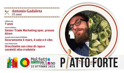 Il 22 ottobre Molfetta chiama Milano. Abbiamo programmato una giornata-evento presso l'Expo Gate in Piazza Sforza che metterà al centro le storie dei professionisti e delle realtà produttive molfettesi che si sono fatte largo nel capoluogo lombardo nell'ambito della cucina, dell'arte, della moda, delle produzioni agroalimentari di qualità. Ovvero le vostre storie, che vi invitiamo a raccontare perché pur avendo lasciato la nostra città siete con orgoglio molfettesi che studiano, lavorano, vivono a Milano. Perché vi consideriamo e dovete sentirvi ancora parte della nostra comunità cittadina.