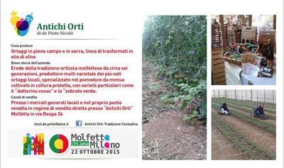 Il 22 sarà per questo una giornata che prevede incontri e presentazioni. Sono inoltre previste degustazione di prodotti tipici, proiezione di videoclip, lezioni di cucina degli chef "stellati" molfettesi che lavorano e si sono distinti nella città dell'Expo. Per riassaporare anche il gusto di essere molfettesi.