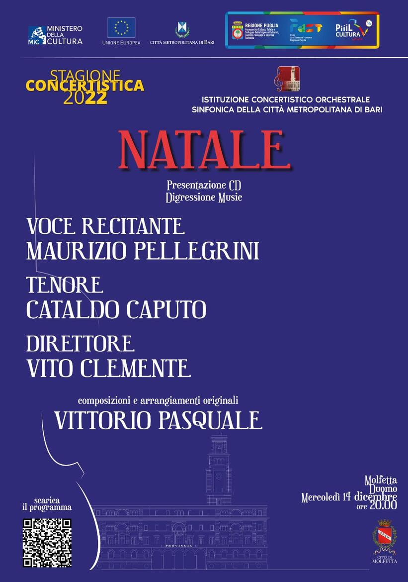 Mercoledì 14 dicembre, alle ore 20.00, nel Duomo, l’Orchestra Sinfonica della Città Metropolitana di Bari eseguirà i brani di “Natale”, lavoro realizzato dall’ICO di Bari in coproduzione con il Traetta Opera Festival di Bitonto per l’etichetta discografica Digressione Music. Il lavoro racconta la Puglia attraverso gli autori che hanno contribuito alla crescita di generazioni di musicisti e guarda anche alla tradizione popolare.