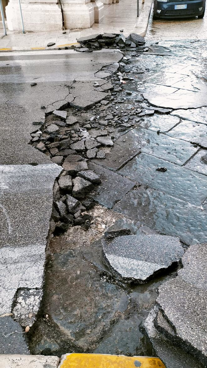 «Abbiamo provveduto, con l’ausilio dei nostri tecnici comunali, del dirigente, ingegner Binetti, e con il personale di Multiservizi e Asm, a mettere in sicurezza l’area a ridosso di piazza Vittorio Emanuele, all’altezza dell’ex comando dei vigili. La strada è stata riaperta al traffico. I tencici sono, ora, al lavoro per individuare gli interventi da porre in essere per evitare che situazioni analoghe possano ripetersi». Ad affermarlo è l’assessore ai lavori pubblici, Nicola Piergiovanni.