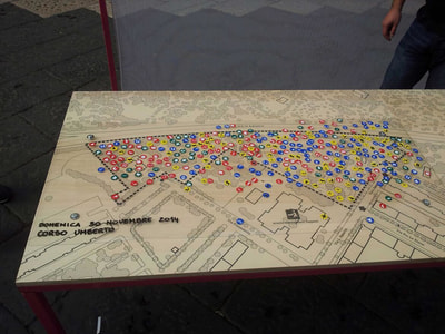 In ognuna delle 5 tappe (Corso Umberto I, Piazza Municipio, Mercato via A. Salvucci, Mercatino S. Nicola, Sagrato Chiesa Sant'Achille) è stata prodotta una mappa dei desideri collettiva a partire da un abaco di funzioni, attività e caratteristiche organizzate in quattro gruppi: forme del verde, attività del tempo libero e cultura, sport e gioco all'aria aperta, servizi e attrezzature.