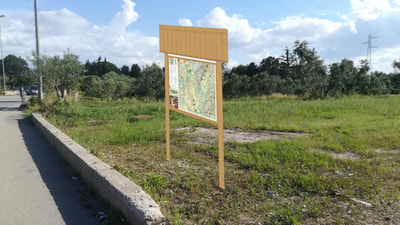 Sulla base del progetto predisposto lungo il percorso saranno posizionati due pannelli di inizio e fine percorso, dieci pannelli con la descrizione dei luoghi e della vegetazione, cinquanta paletti da orientering con QR code.