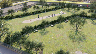 Il dog park sarà adiacente ad un parco pubblico, di ulteriori 5000 metri quadrati, un polmone verde attrezzato per consentire ai bambini e ai residenti del quartiere in genere, di poter usufruire di un luogo di aggregazione ma anche di un'area verde.